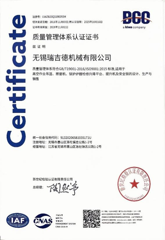 Wir bedanken uns allen Mitarbeitern für ihre Einheit und Hingabe sowie unseren Kunden und Partnern für ihr Vertrauen und ihre Unterstützung! Rigid wird seine Expertise auf dem Gebiet der Stahlkabelkletterausrüstung weiter vertiefen und sich in vier Hauptproduktbereichen bemühen, sich auszeichnen: intelligente Aufzugsanlage-Kabelkletterausrüstung, Windkrafthebegeräte und Sicherheitseinrichtungen, moderne Bauheber sowie Wartungsplattformen für Wärmekraft und Chemiekessel. Lassen Sie uns in Zukunft gemeinsam mit stärkeren Schritten vorantreiben, um ein Branchenbenchmark zu werden!